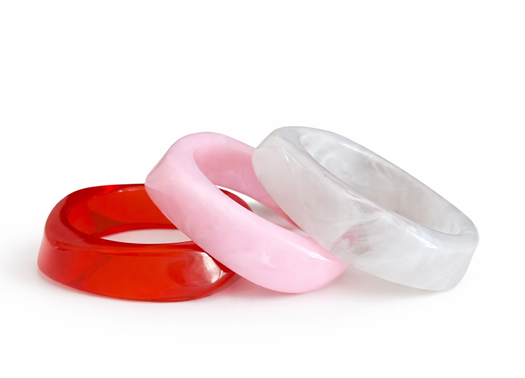Make a statement with our Luxe Resin Stack Set. Designed with a bold chunky silhouette and glossy finish, these bangles bring the perfect mix of modern and classy. Ideal for stacking and styling with both casual and dressy outfits.