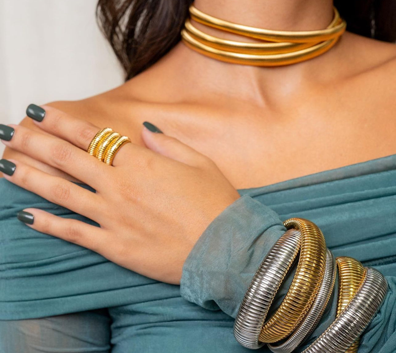 Make a statement with this Multi Flexible Choker. It's the perfect accessory to add a touch of style and sophistication to any outfit.